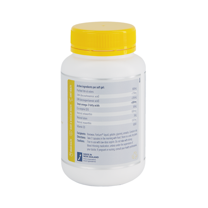 Omega-3 fatty acids contain valuable antioxidants that support the cardiovascular system and joint mobility. Omega-3 from fish oil is also linked with healthier blood pressure and lower cholesterol levels and plays an important role in brain function, including mood and memory.