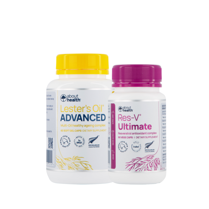 Our most advanced joint support, Lester's Oil Advanced (Gold) coupled with our best-selling antioxidant formula, Res-V Ultimate.
